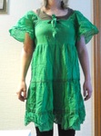 När jag väl satte i gång gick det fort. Jag sprättade jag upp sömmarna på ärmarna och tog bort dem. Sedan sydde jag in klänningen en smula och till sist knöt jag banden (som tidigare varit någon slags rosett) runt halsen.
