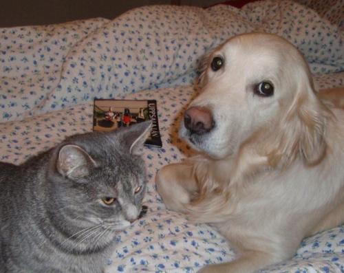 Men gud så gulligt, och jag som också har en Ronja kisse. Hon har identitetsproblem, vet inte om hon är katt eller hund. Hon försöker dia från Malte, som inte bara är hanne utan en flat coated retriver. Det är många fel på det hi hi. Så du förstår att Malte behöver en golden kompis och Ronja behöver terapi.