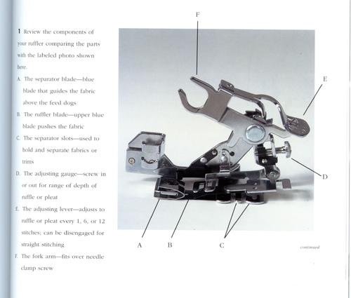 Hittade en pdf som beskriver hur en modell skall användas. http://www.sewingmachinesplus.com/me...cs/ruffler.pdf |