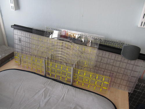 Jag har bara en quilt linjal (en såndär stor) och en mall (till Double Wedding Ring). Jag satt just och trånade efter en annan linjal som man kan göra stjärnor med men kände att så många linjaler och mallar kan jag inte ha. Men nu ser jag ju att man kan ha jättemånga linjaler! :) Vilken är din bästa linjal? |