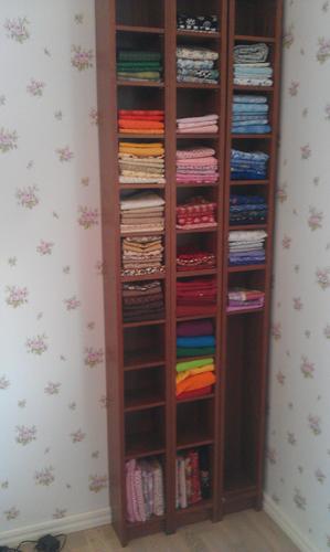 Jag blev lite inspirerad och uppdaterade förvaringen av mina lapptäckstyger. CD-ställ är perfekt för att vika ihop och förvara så att man ser väl.