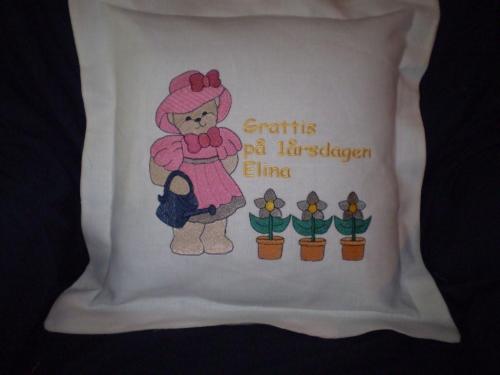 Menar du sån nalle som jag har på min sista kudde? Skriv till mig om du är intresserad.