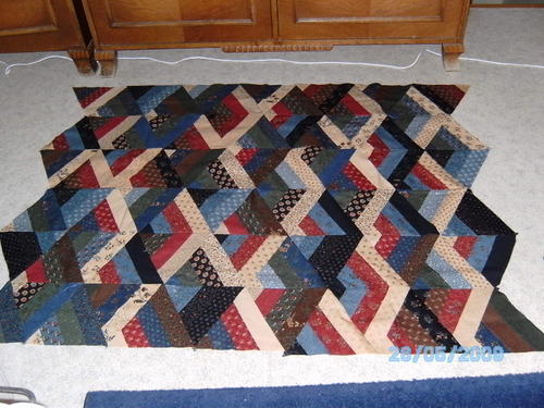 Jag har sytt en topp till en pläd och nu är det "bara" quiltningen kvar. Jag är nybörjare på detta med att quilta så jag behöver hjälp med lite idéer. Jag tänkte försöka quilta denna på maskin. Jag håller på och undersöker om jag kan få tag i en övermatningsfot till min Bernette 70. Hoppas det finns. Annars får jag väl tråckla först så kanske det går att få till ändå.