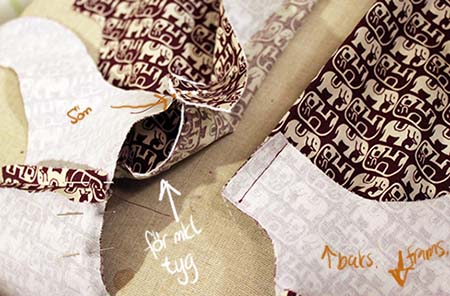 shit vad detta är förvirrande. Först och främst, när det gäller infodring som är påstruket på tyg, räknar man tygsidan eller mönstersidan som räta/aviga? Kan det vara där jag tänkt fel? Det står: