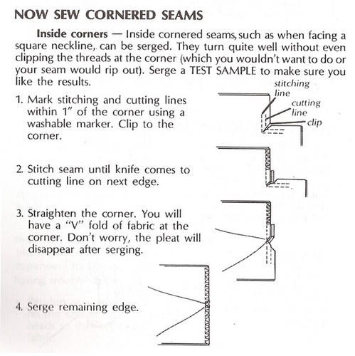Här kommer ett tips för er som har problem med hörnsömnad. Bilden är tagen ur boken "Sewing with sergers".