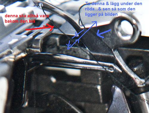 Testa o lägg tråden under griparen istället för över som den ligger på bilden.