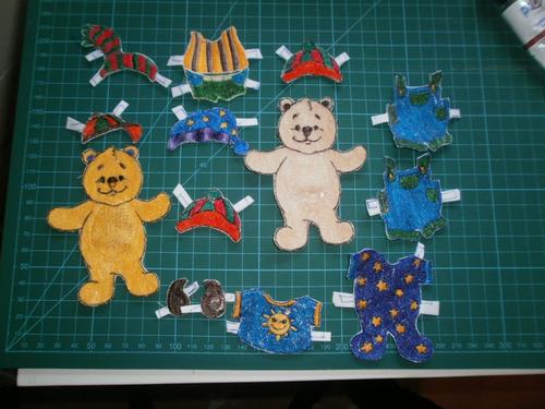 Är det någon son broderat klippdockor. Jag undrar vad man brodera på? Något sorts hållbart tyg eller papper. Man kan ju klippa ut små flikar som man viker in under dockan eller i detta fall en nalle så kläder siter på.. kanske finns det andra ider hur man ska gör.