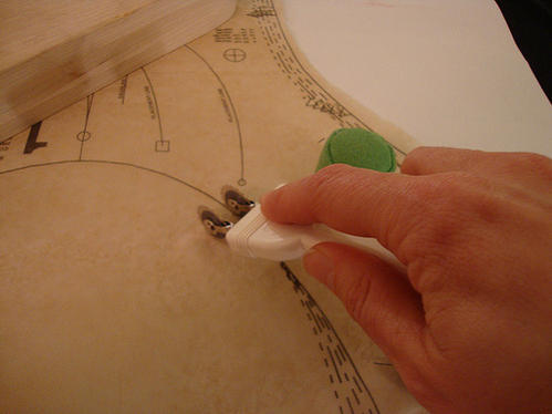 Synd bara att det är plåtsporrar och inte riktiga nålar. Tror jag fortsätter köra på quiltinglinjal (borde egentligen heta lapptäckeslinjal) vilket jag tycker är det bästa jag testat.