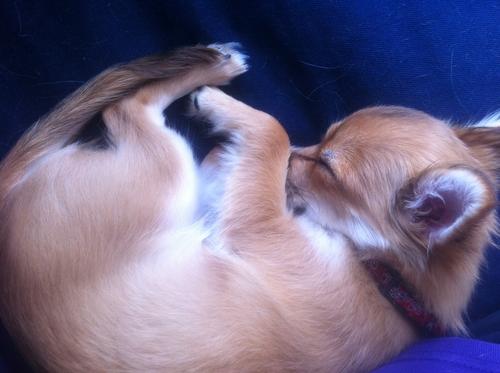 Har 2 vuxena Chihuahuaor men längtade efter en valp , så det blev Moa 18 veckor nu. Hon är otroligt snäll och en riktig spjuver. Hon ser ut som en mini räv,ska bli kul att följa hennes utveckling.