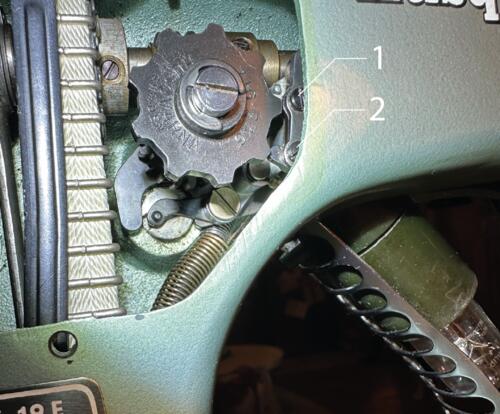 Kom tisdag jämna veckor, 17:00 - 19:00. Jag pratar svenska och kan fixa maskinen. Gratis kaffe också. ;-) Men det jag ser från foton är att skruv 1 & 2 är svårt åtkomliga då de är pressat ut av kammen. Om du varvar 'handhjulet' lite, kommer de skruvar att gå ner i dalarna på kammen och du kommer åt. Skruv 3 är kopplingen mellan armen som styr zig-zag. Om den hade varit en justerskruv, skulle den ha en excentrik under skruvskallen och en kontramutter på gänget - och jag ser inte det. Alltså ingen juster-skruv. Sedan vet du vad som ska göras. Men om du INTE har justerat något och BARA har rensat (och smord?) ska den inställning inte ha gått snedd. Så kolla NOGA efter skit som kan ligga emellan någonstans innan du justerar, bara ifall...! Det kan även vara att armen från kam-hjulet till skruv 3 kan ha blivit böjd lite lätt, det vill ge exakt det fel du har problem med. |