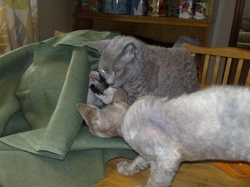 ![]() Samtliga katter jag haft har alltid "stjälpt" till. Den första var en luring vars specialité var att snabbt dra ut alla knappnålar efter att man nålat ut ett mönster på tyget... Nuvarande misse bara älskar strykbrädan - en perfekt liggplats att håra ned... Broderimaskinen studeras intensivt när den tickar på... Trådarna/trädningen på overlocken dras iväg & sabbas om man vänder ryggen till... (Man blir bra på att trä om den till slut i alla fall!) Vovven däremot, är gärna med i tyger o tillklippning men smyger snabbt iväg när symaskinen drar igång. För det skulle ju kunna vara något till honom som han kanske måste prova in - ve o fasa! Kläderna är bra ute när det är kallt, men behöva prova & modella = näää, bläää... Ps, Kaninen Loppan är nog den sötaste handarbets-assistenten jag har sett! |