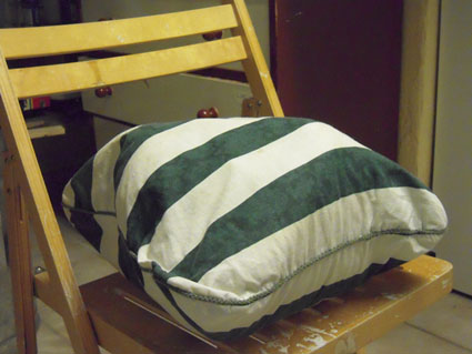 Det här är inte direkt en ”skapelse” utan mer en rätt katastrofal missbedömning. En stolsdyna till utemöblemanget fick åka tvättmaskin och centrifug. Det gillade den inte!
