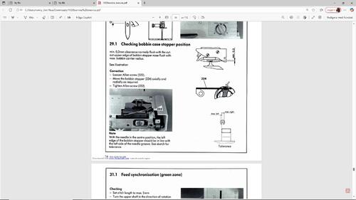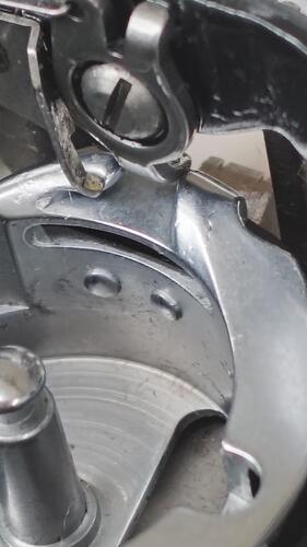 Till en början tittade jag på maskinen och försökte se på olika videor, men fattade ingenting Sedan lämnade jag in den till en reparatör som heller inte fattade någonting, men fick lite tips Jag tänkte lämna den till en annan för second opinion men kom inte så långt Jag tittade på min symaskin se bild. Pfaff har en liknande konstruktion men utan pinne bredvid, i denna pinne fastnade tråden https://www.youtube.com/watch?v=6MB7pBQVfaU Men Juki har en sådan här pinne https://www.youtube.com/watch?v=2O0PeyRZDhQ Man måste justera in stoppen med så stort utrymme och långt ner som möjligt mellan spolhuset och stoppen så att pinnen inte fastnar i tråden Se bild Eftersom jag varit utsatt för problemet två gånger och jag inte kan hitta någon lösning på webben så gör jag detta inlägg Det finns även andra maskiner med roterande gripare t ex 1630, om de har samma svårigheter det vet jag inte. Armen som stoppen sitter på är relativt lång och sitter endast med en stoppskruv, så om en stark tråd fastnar och man drar i den blir det stort moment på armen och den kan komma ur läge Om jag hade en sandal i läder och nytt kardborrband måste sys på plats med en tråd t ex Gutermann extra strong och jeans nål, så skulle inte jag i första hand välja denna maskinen. Om någon vill kan ni översätta detta till engelska |