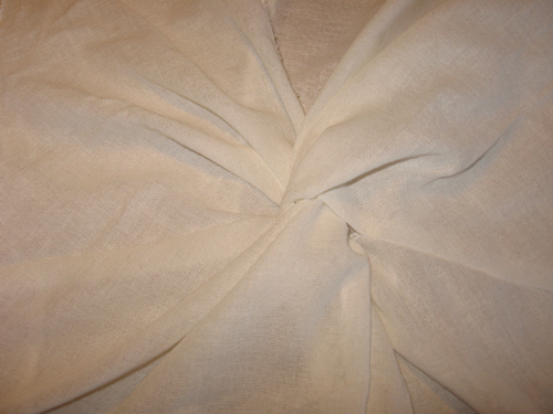 Jag skulle välja något skrynkelhärdigt. Gärna med lite stretch i. Draperingen ska ju synas men inte vara klumpig och inte bli full av platta rynkor.